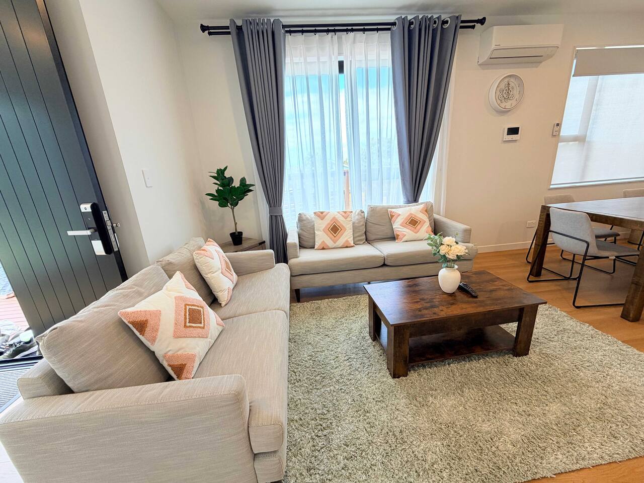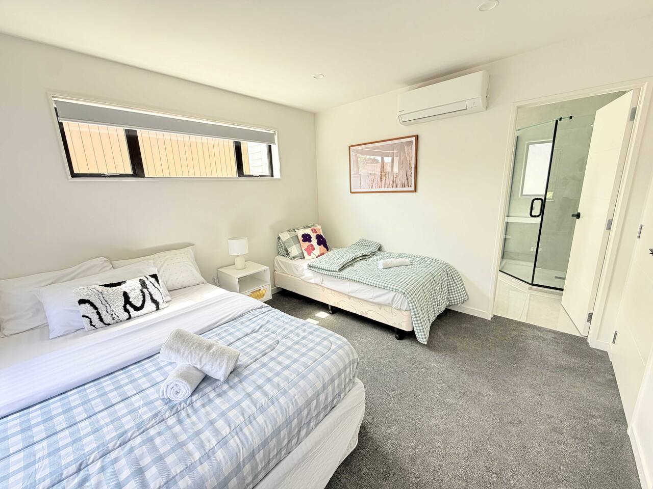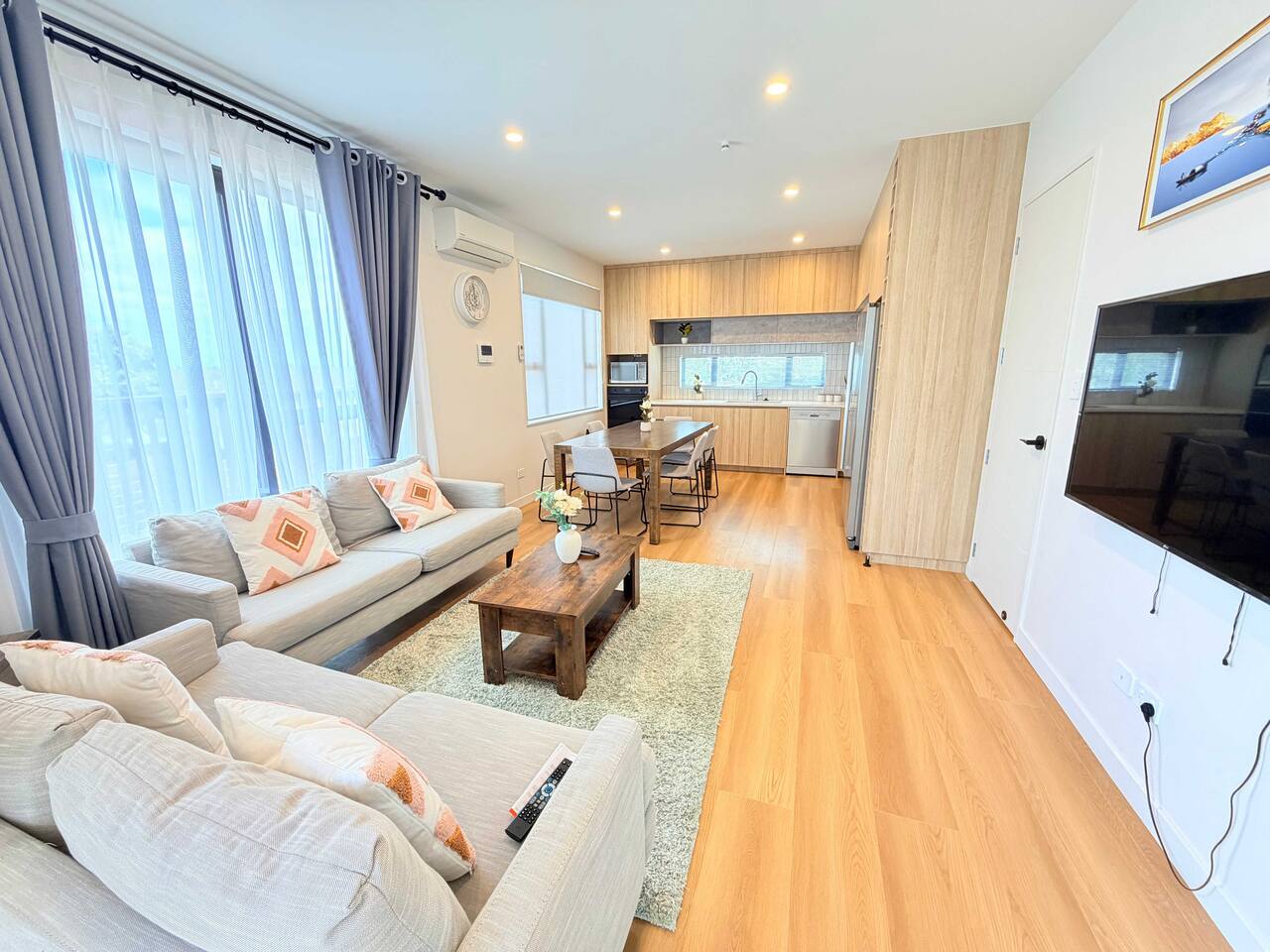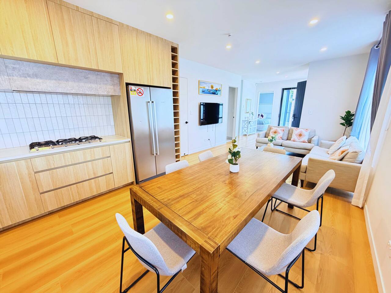 Rooms & Spaces This newly built home offers generous space and a smart layout ideal for families and groups. Spacious 4 bedrooms, including 2 en-suites, comfortable bedding Multiple living areas are perfect for relaxing or entertaining Fully equipped modern kitchen with ample storage and bench space Contemporary bathrooms with quality fittings High-end furniture throughout Bright, open-plan design with excellent natural light Everything has been thoughtfully designed to provide a comfortable, modern stay.