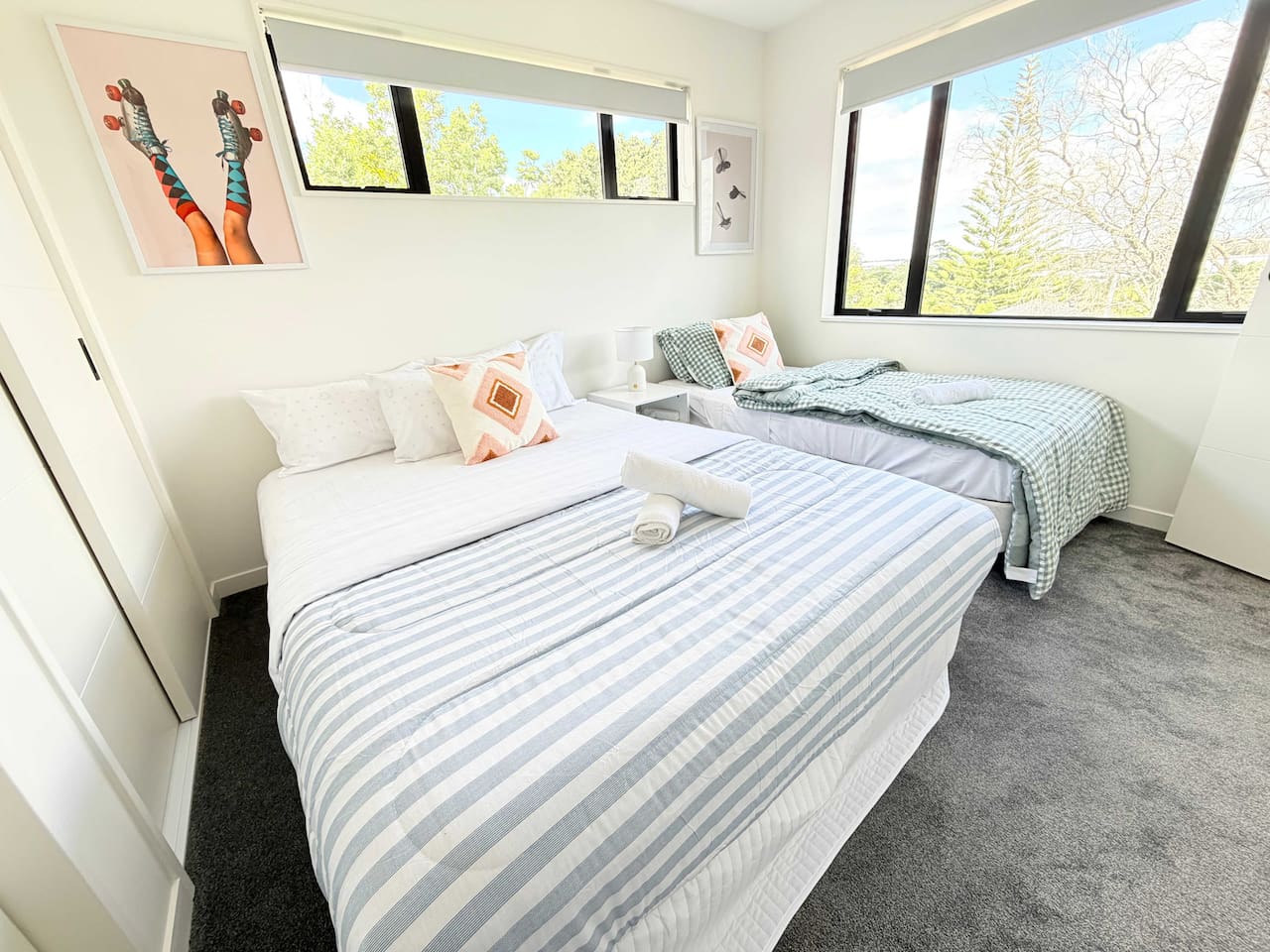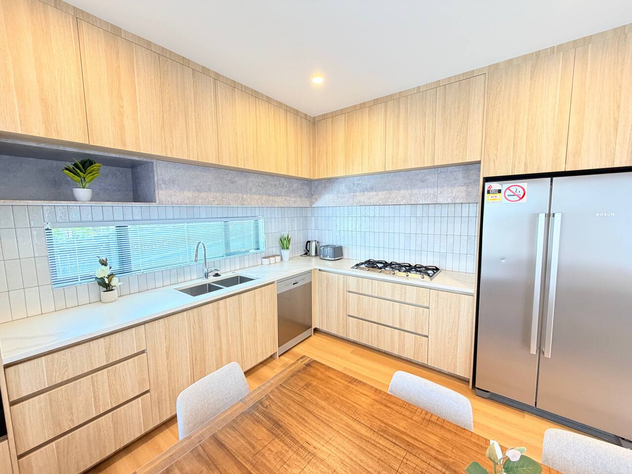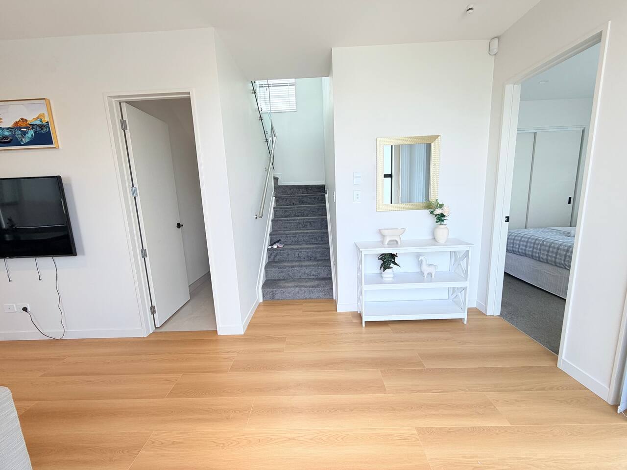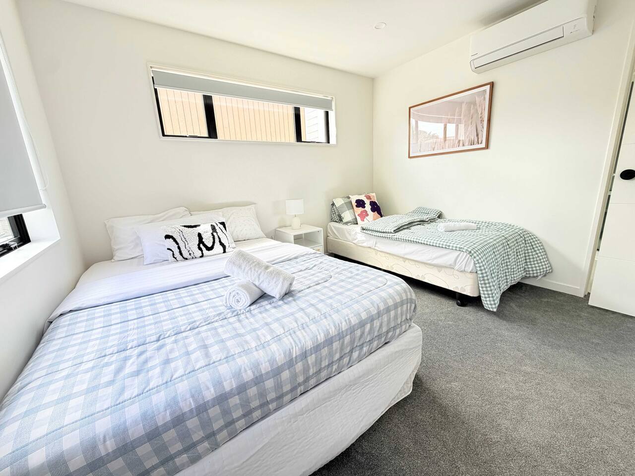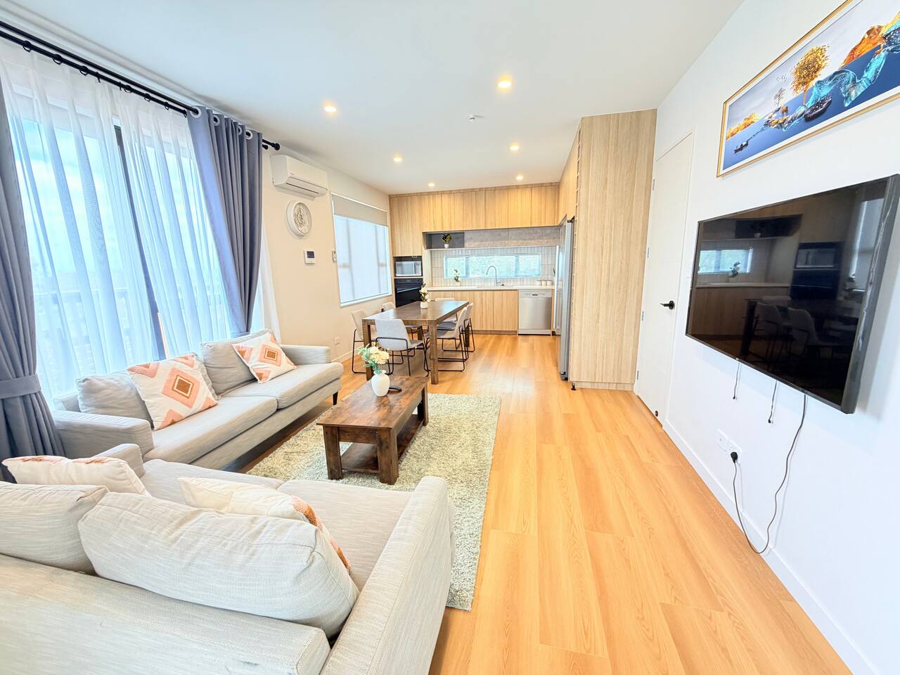 Rooms & Spaces This newly built home offers generous space and a smart layout ideal for families and groups. Spacious 4 bedrooms, including 2 en-suites, comfortable bedding Multiple living areas are perfect for relaxing or entertaining Fully equipped modern kitchen with ample storage and bench space Contemporary bathrooms with quality fittings High-end furniture throughout Bright, open-plan design with excellent natural light Everything has been thoughtfully designed to provide a comfortable, modern stay.