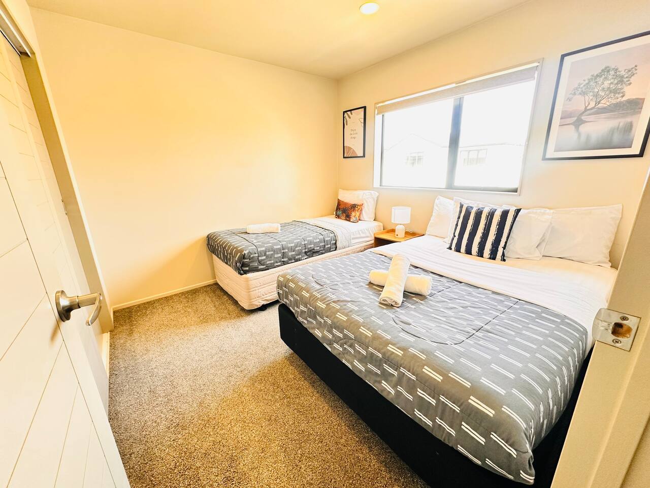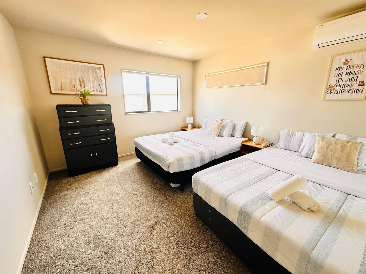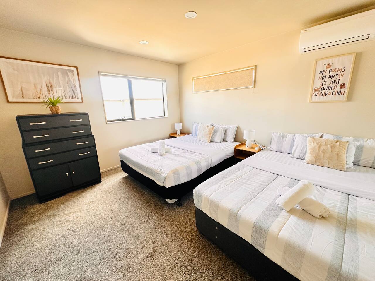 This spacious 5-bedroom home is perfect for families or groups, or sports teams. Designed for comfort and convenience, the house offers modern interiors, a fully equipped kitchen, and a good living area for everyone to relax together. Bedding Layout: Room 1: Two Queen beds with an ensuite Room 2: Two Queen beds Room 3: One Queen bed and one Single bed Room 4: One Queen bed and one Single bed Room 5: One Queen bed With ample space throughout the house, this property provides a comfortable stay for guests. It’s ideal for both short and long-term stays, offering a welcoming environment close to Auckland city and local amenities.
