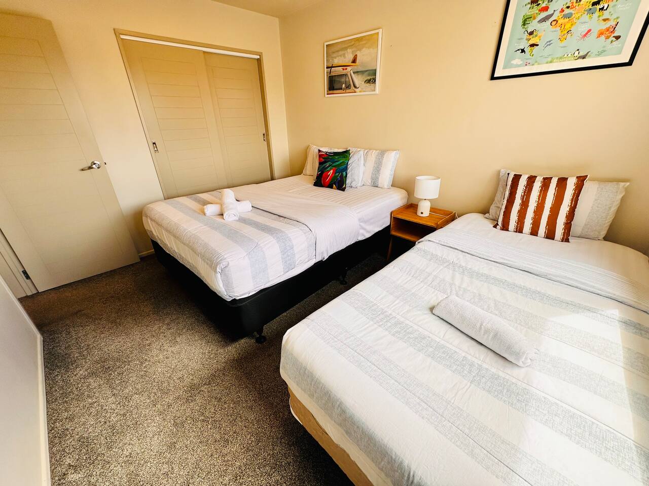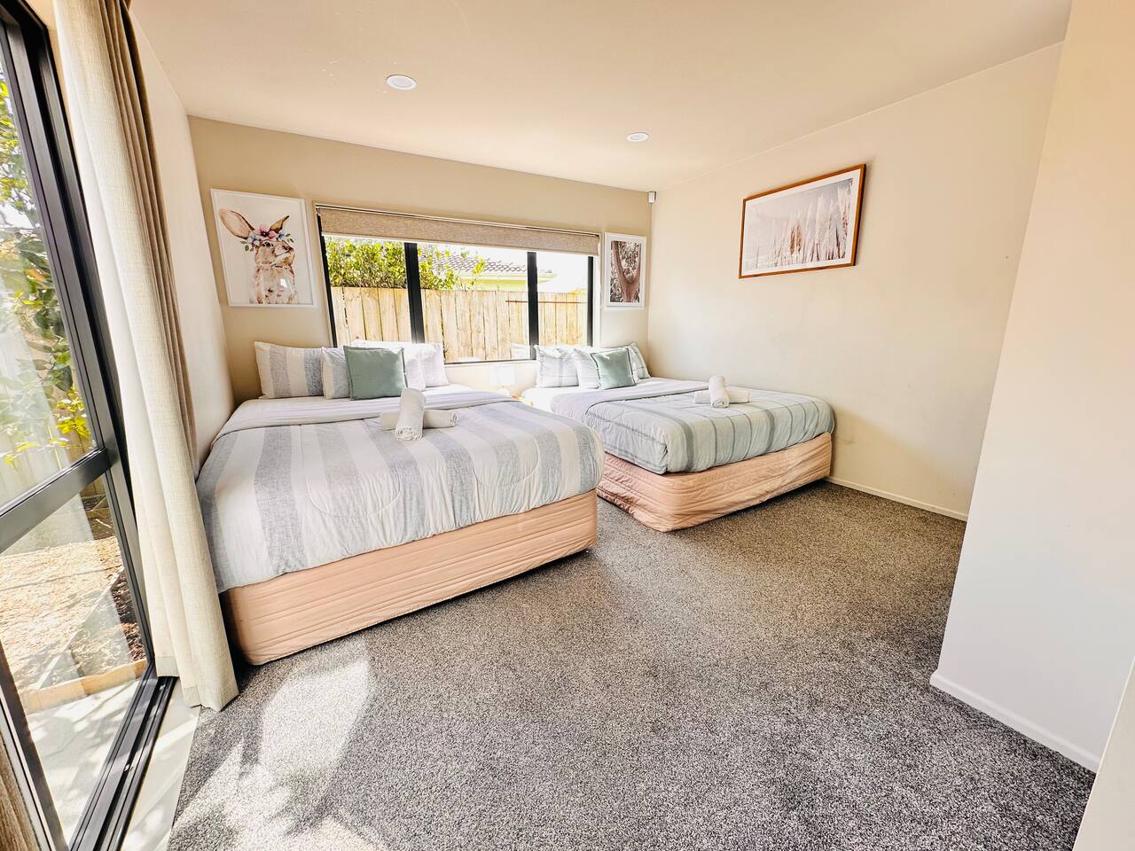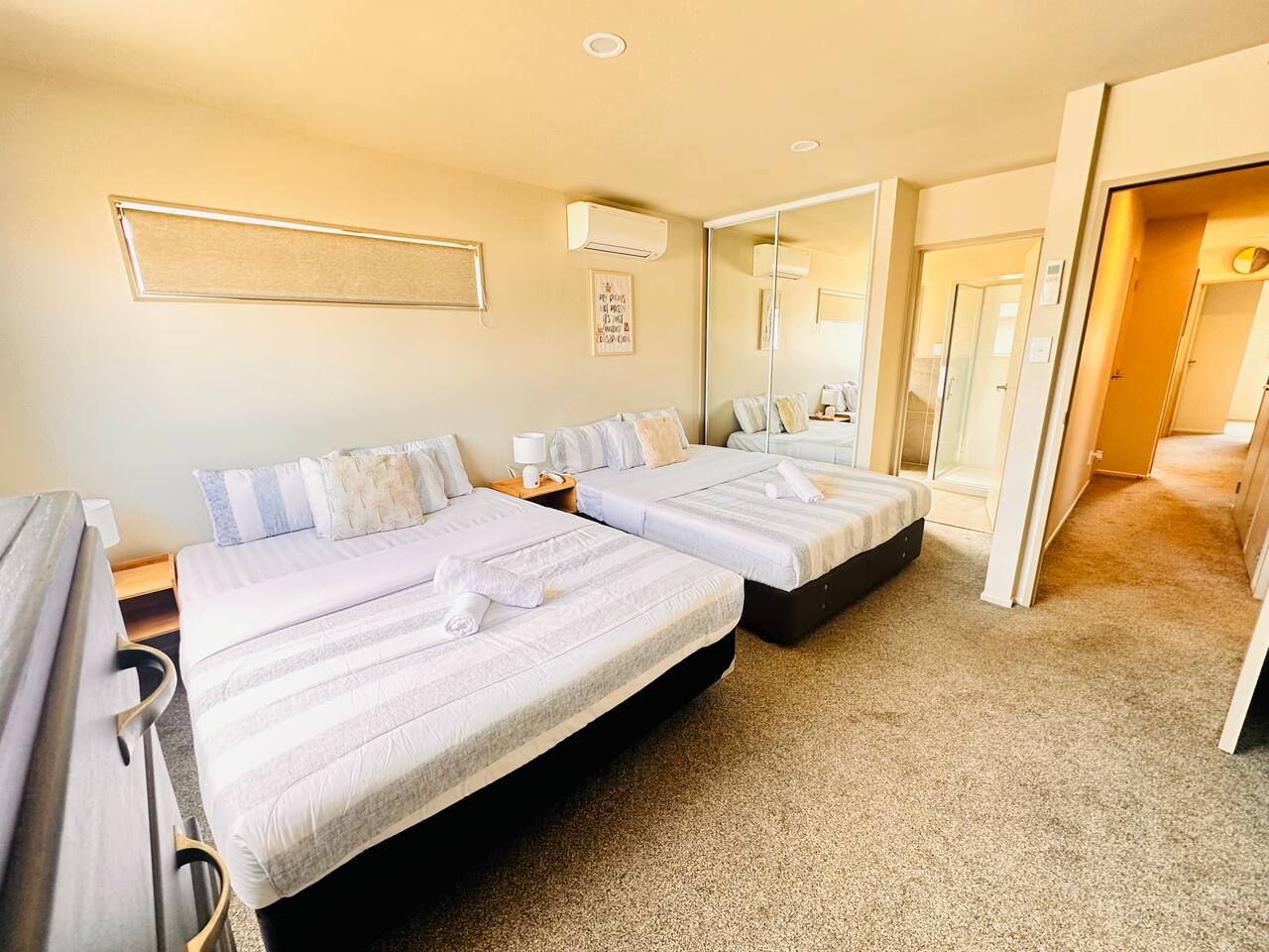 This spacious 5-bedroom home is perfect for families or groups, or sports teams. Designed for comfort and convenience, the house offers modern interiors, a fully equipped kitchen, and a good living area for everyone to relax together. Bedding Layout: Room 1: Two Queen beds with an ensuite Room 2: Two Queen beds Room 3: One Queen bed and one Single bed Room 4: One Queen bed and one Single bed Room 5: One Queen bed With ample space throughout the house, this property provides a comfortable stay for guests. It’s ideal for both short and long-term stays, offering a welcoming environment close to Auckland city and local amenities.