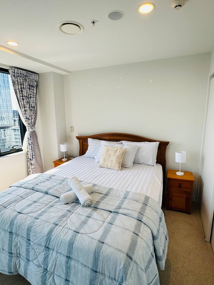 Modern 2-bedroom Apartment with Iconic Sky Tower Views Enjoy your stay in this stylish 2-bedroom apartment with stunning views of the Auckland Sky Tower from the balcony. Featuring a fully equipped kitchen, a cozy living area, a dining space, and a full bathroom, this apartment is perfect for small families or groups. Relax with unlimited Wi-Fi, a Smart TV, and all the comforts of home, just minutes from Auckland's top attractions. # Unmatched balcony views of the Auckland Sky Tower # Central location – close to cafes, restaurants, and attractions # Comfortable and stylish space for a perfect getaway # Free Wi-Fi, Smart TV, and all the amenities you need for a great stay