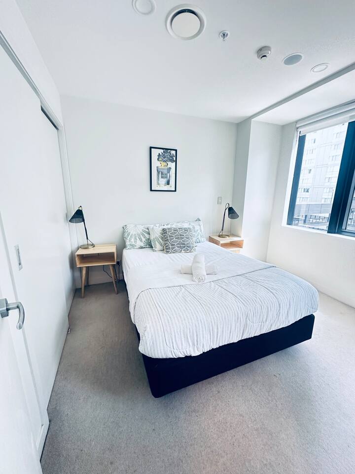 Welcome to our spacious 2-bedroom, 1-bathroom apartment in the heart of Auckland’s CBD, right in front of the iconic Sky Tower! Accommodating up to 6 guests, it features 2 double beds and 2 single floor mattresses. You're steps away from top attractions like the Sky Tower, Auckland Art Gallery, Queen Street shopping, and the Viaduct Harbour. Enjoy the convenience of nearby dining, transport, and vibrant city life—all at your doorstep!