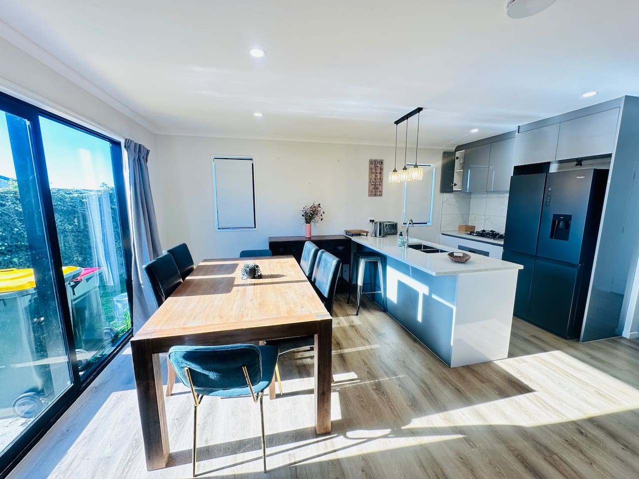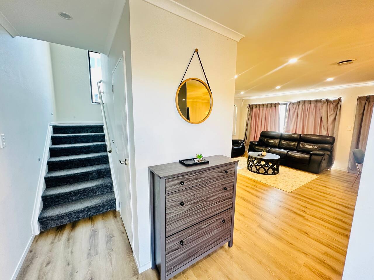 This brand-new, modern home is located in the peaceful Hillsborough area, just a short drive from the heart of Auckland. With spacious, well-lit rooms and contemporary design, the property offers a relaxing escape with all the amenities you need for a comfortable stay. Rooms and Spaces: # Bedrooms: The house features 4 comfortable bedrooms with high-quality bedding, ensuring a restful night’s sleep. # Bathrooms: 2 full bathrooms and an extra toilet, beautifully designed bathrooms, equipped with all essential amenities, including fresh towels. # Living Area: A spacious, open-plan living area with stylish furniture and a Smart TV, perfect for unwinding after a day of sightseeing or work. # Kitchen: A fully equipped kitchen with modern appliances, including a stove, refrigerator, microwave, and all the essentials for cooking your favorite meals. # Dining Area: A cozy dining space for family meals or casual gatherings. # Outdoor Space: Enjoy the fresh air in the outdoor area, ideal for relaxing or hosting small gatherings. With easy access to public transport, motorway, and nearby attractions, this home is perfect for those looking to explore Auckland while enjoying the comfort of a brand-new, stylish space.